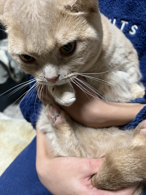| 特徴(性格など) | クリームタビーの短足マンチカン。 警戒心は強いですが、一緒に寝たりします。 水は貯め水ではなく、直接蛇口から飲むか、自動給水器しか飲みません。 |