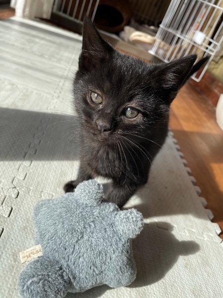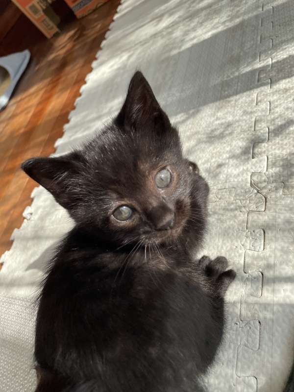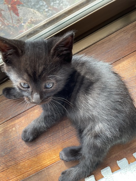 | 特徴(性格など) | 黒猫ちゃんの兄弟です(たぶん男の子かと思います) 推定ですが1ヶ月〜2ヶ月未満くらいかと思われます。 2匹とても仲が良く、元気いっぱい毎日走り回っています☆ ご飯もよく食べて、猫風邪もほぼ治ってきています(まだたまにくしゃみがでます) 1〜4枚目の写真は11月中旬に撮ったものですので、いまはもう少し大きくなっていますが、まだふわふわコロンコロンしてとってもかわいいです☆ 人慣れ練習もできています。 |
