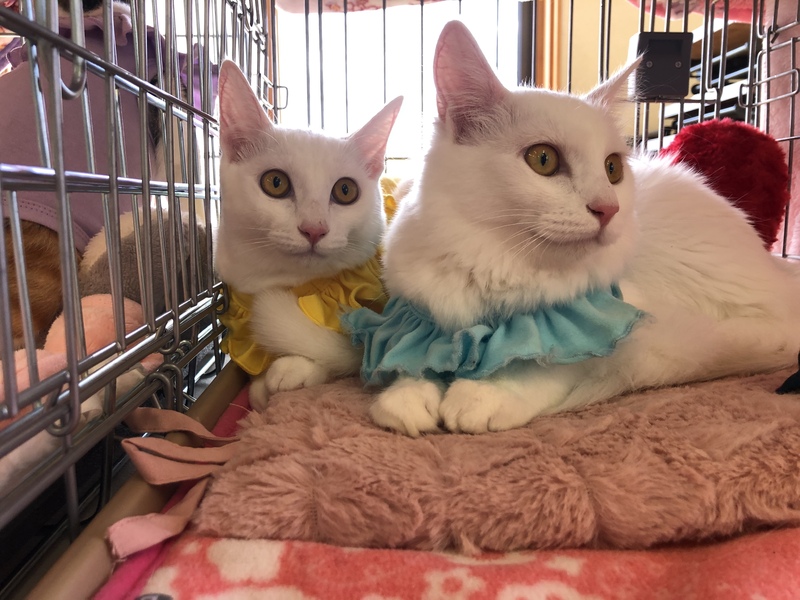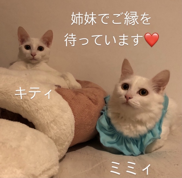 | 特徴(性格など) | 真っ白の中毛がミミィ、臆病ですが、好奇心も旺盛♡ご飯が大好き♡遊ぶのも大好き‼︎ 真っ白の短毛がキティ、臆病ですが、ご飯が大大大好き♡おっとりしています⁽⁽ଘ( ˊᵕˋ )ଓ⁾⁾ |
