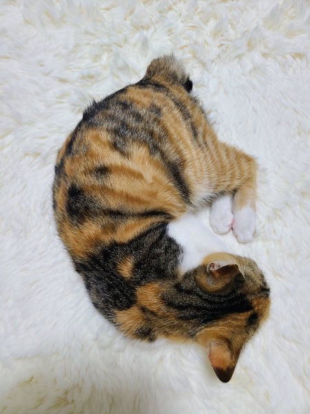 | 特徴(性格など) | 抱っこ大好き、可愛い三毛ちゃんです。 シュファ、リーシャと家族(姉妹または従姉妹かも)で仲良しです。 のんびりした性格のようで抱っこも好きです。 |