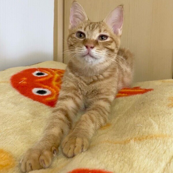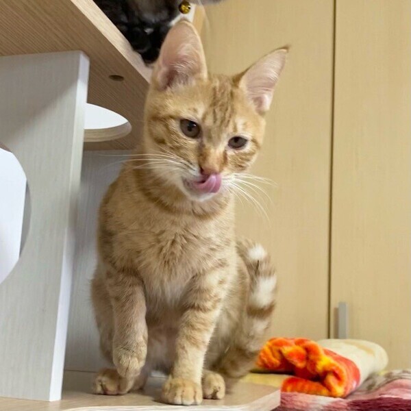 | 特徴(性格など) | 好奇心旺盛な「オアチャン」くん❤ 玩具大好き♪抱っこもまだちょっと怖いけどまんざらでもないっ♪な甘えん坊になる予感 現在、ドライフードを24時間の置き餌として栄養補給、水分補給のため一日2回パウチを与えています。 <推定誕生日:8月始めごろ> |