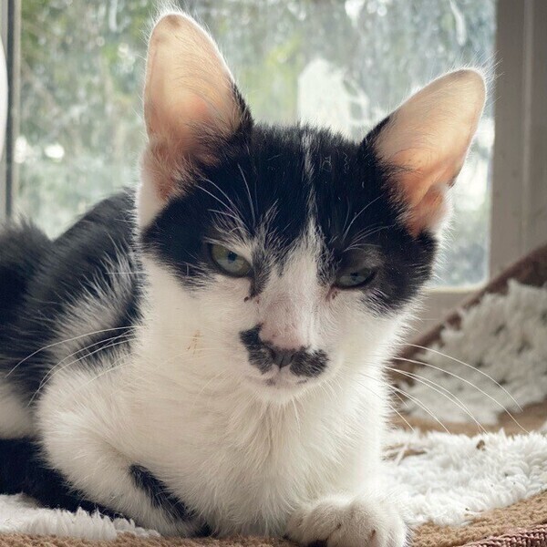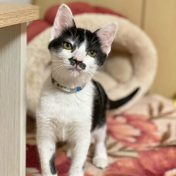 | 特徴(性格など) | 人が大好きな「シャウラ」くん❤ ちょっぴりひょうきん坊や♪人が大好きで、声をかけただけで、いそいそ傍に駆け寄ってきてくれる甘えん坊♪ 現在、ドライフードを24時間の置き餌として栄養補給、水分補給のため一日4回パウチを与えています。 <推定誕生日:9月中頃> |