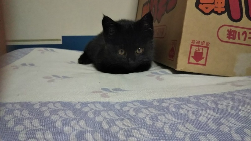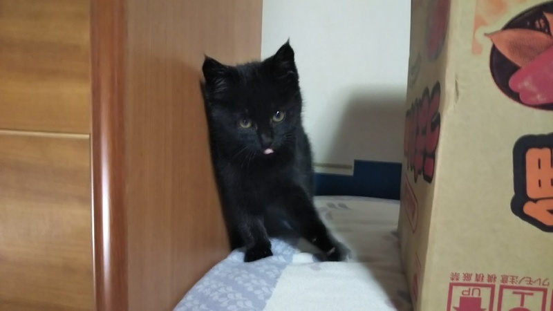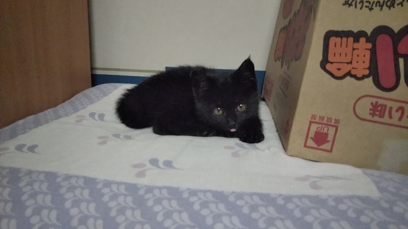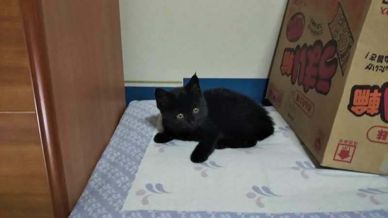 | 特徴(性格など) | 黒猫の男の子です。曲がり尾。 元気いっぱい、やんちゃです。 |