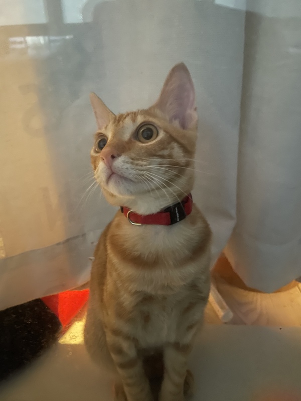 | 特徴(性格など) | イケメン(美人)な茶トラの男の子です。 性格は好奇心旺盛で甘えん坊です。 ツンされたかと思えばすり寄ってきたり、抱っこも嫌がらず、ゴロゴロ喉を鳴らしてくれるような子です。 トイレの粗相なし、爪とぎは壁でしない良い子です。 |