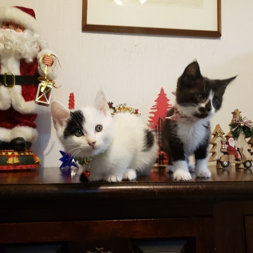 | 里親募集する理由 | 夜に公園でペットフードの空き箱に入れられ遺棄されていた風邪気味の仔猫2匹と遭遇したため、保護しました。 | ||