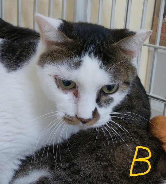 | 特徴(性格など) | 4匹(A~D)共に警戒心はありますが、慣れるとゴロンとできる甘えん坊の好奇心・食欲共に旺盛で 他の猫ちゃんと仲良くできます A:女の子 1歳ぐらい とにかく甘えん坊で触ることもすぐできます(抱っこは難しい)超甘えん坊です B:男の子 2~4歳ぐらい 4匹のボス的存在 ご飯をくれる人大好き(食べ物に弱い) 遊ぶのも大好き C:男の子 2~4歳ぐらい 慣れると人にそっとくっついて寄り添いゴロゴロする甘えん坊さんです D:男の子 5歳ぐらい 慣れるとお腹を見せてゴロゴロします 4匹の中で一番頭が良いと思います |