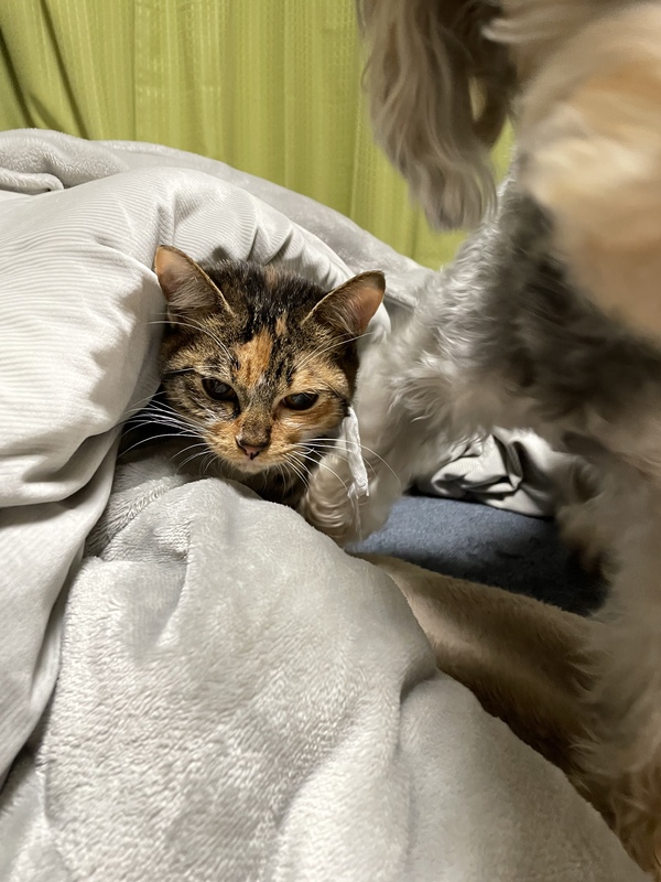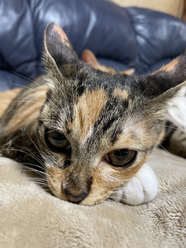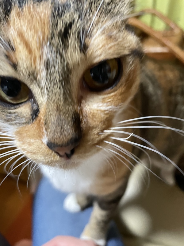 | 特徴(性格など) | 三毛猫です。 とてもマイペースであまり走り回ったりせず、一箇所でじっとしている大人しい猫ちゃんです。 触ったり、抱っこをされるのが苦手ですが、自分から寄ってきたり、顔をスリスリしてくるツンデレな性格をしてます。 |