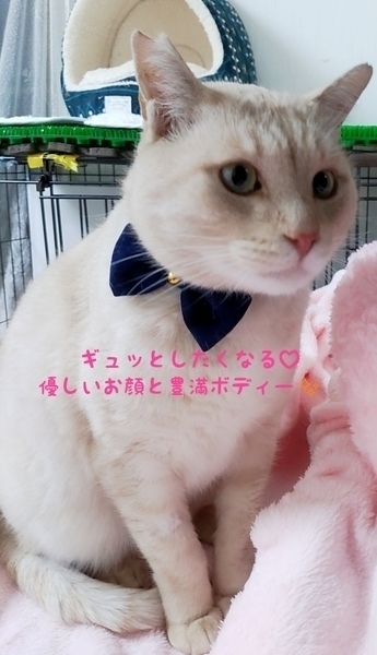 | 特徴(性格など) | 預かり.代理投稿です 【特徴】 全体的にクリーム色の毛色で お顔に縞柄 体には薄い縞柄があります パピ君のいーとこ ギュッと詰まった豊満ボディー✨ 【性格】 穏やか 預かり初日は緊張していましたが 初対面でも抱っこ出来 撫でるとゴロゴロ快適音を 聞かせてくれました。 日なたぼっこ、撫で撫で大好きで シッポ振り振り♪トロンとして しまいます。 朝は扉前で呼び 夜寝室に入ると小さな声で 少しだけ寂しなきします。 昼間はパピ君がいる部屋から出ても 不思議と寂しなきする事はなく 静かに留守番出来ます。 日中はほとんど窓際のタワーで 過ごしとても大人しく 大きな体でまったりしている姿に 癒されパパー!と甘えたくなる 癒しオーラいっぱいの猫さんです♡ |