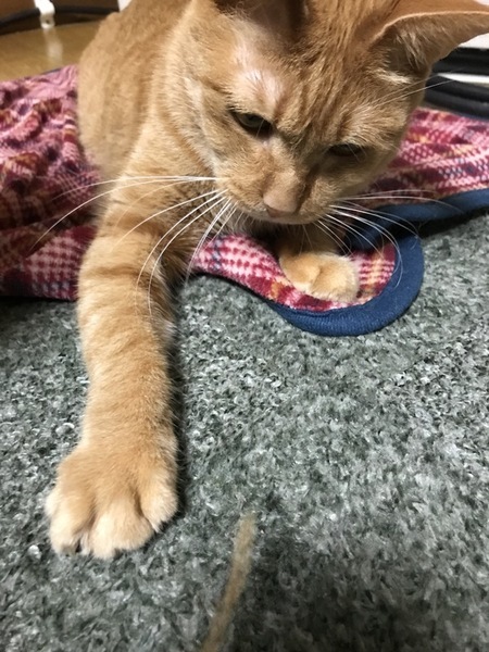| 特徴(性格など) | 【生年月日】推定2016年夏生まれ 【種類】MIX 【毛色】茶トラ 【性別】オス 【去勢】済 【ワクチン】済 【駆虫】済 【猫エイズ・白血病】共に陰性 【健康状態】 左目は涙が出やすいです(時々拭う程度です。 下の牙が1本ありませんがドライフードをよく食べ、元気です。 【性格】 おとなしく、滅多なことでは怒らない優しい性格のおじさん猫です。 環境に慣れるまで臆病ですが、仲良くなると愛情を振り撒いてくれます。 抱っこも平気です。 猫じゃらしが好きで、粘り強く遊びます。 |