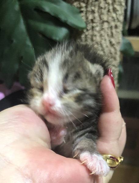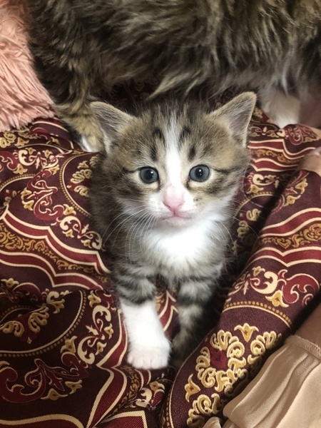 | 里親募集する理由 | ブリーダーさんから増えすぎの為マンチカンの赤ちゃんが入っているペルシャを譲り受けましたが、帝王切開で亡くなってしまい。うちのお産をしたばかりの子とオスの猫に可愛がられて育っております。人工ミルクと母乳と半々です。今は離乳食を初めて、トイレもほぼ出来ます。家には先住猫が沢山いるので飼いきれません。 | ||