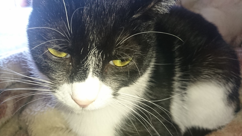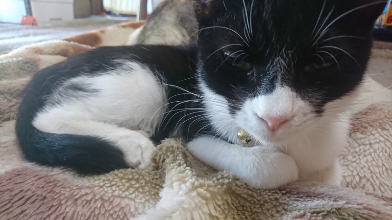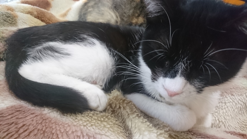 | 特徴(性格など) | シロクロ柄の小柄な痩せ型の女の子です。 好奇心旺盛で人懐こいです。 すぐに馴染めます。 横になっていると、背中に乗ってきます。 食べるのが好きです。 声が高くて、小さくかわいいです。 |