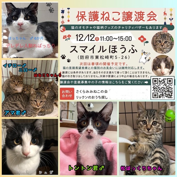 | 譲渡費用(医療費、交通費など) | 医療費負担金として3000円ほどお願いしています。 お連れする際の交通費のご負担をお願い致します。 遠方の方はご相談ください。 |