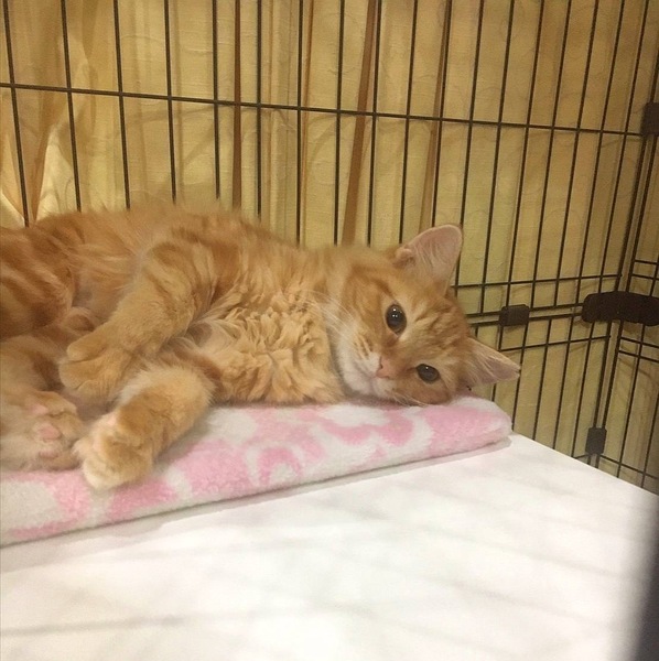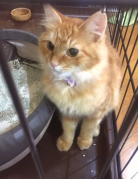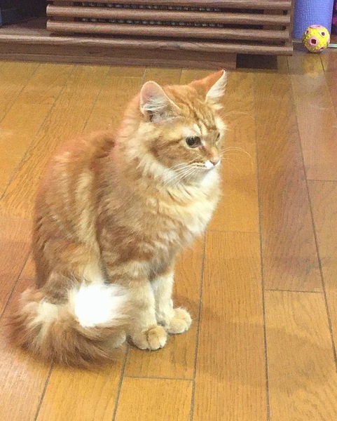 | 特徴(性格など) | 生後5ヶ月半くらいになる茶トラクラシックタビーのしなやかヘアの長毛猫さんです。 保護したばかりの頃はケージでガチガチに固まっていましたが、家猫トレーニングの結果、徐々におうち生活にも馴染んできました。 賢い子で、名前を呼ばれると反応したり、ごはんをもらえる場所を覚えて、ケージの外で遊んでいても必ず所定の場所に戻ってきて待っています。 とても食いしん坊さんで、おやつも大好きです。 自分の番が待ちきれず、「早く頂戴!わたしはここよ!」と言わんばかりに大きな声で鳴いてくれます。 またご飯の準備をしているところに様子を見に来たりもします。 遊ぶことも覚えて、ひとりで遊んでみたり、周りのものをよく目で追っていたりします。 お喋りで、ご飯の時はもちろん、ケージから出して欲しい時、夜中になって寂しく?なると大きな声で鳴きます。 日に日に馴染んできて、外にいるときにはわからなかった個性を表現してくれ、とてもかわいいです。 ★健康状態は良好です ・避妊手術済み ・エイズ&白血病ウイルス陰性 ・ノミ·ダニ駆虫済み ・検便チェック問題なし ・3種混合ワクチン2回接種済み |