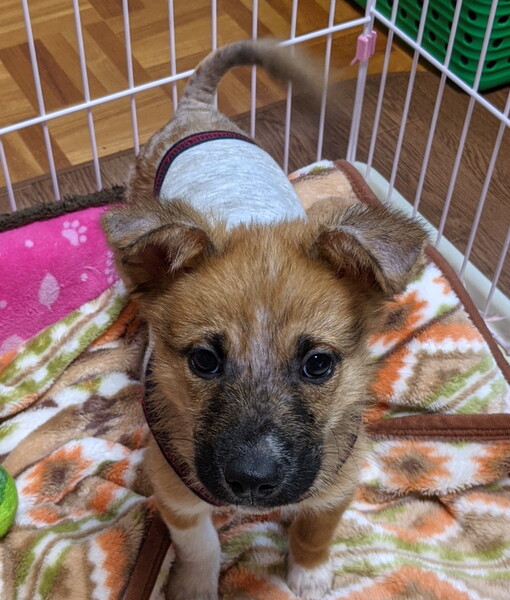 | 特徴(性格など) | 将来は中型(11~15キロ)程度になると思われます。 (現在体重は4キロ超えたところです) 兄妹とは離れ離れになったのかそれでも毎日元気にひとり遊びしています。 食欲旺盛です。 ※保健所に来た頃はシラミがびっしりいたので駆除は済ませていますが、皮膚が荒れた状態でしたので 丸刈りして今は、薬用シャンプーで定期的に洗ってあげています。 |