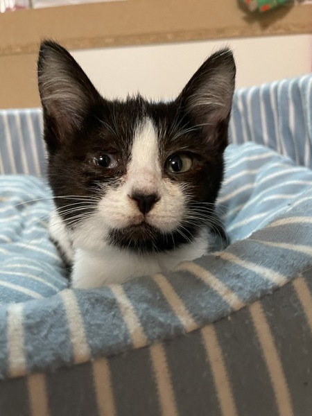 | 特徴(性格など) | ◆マーニーちゃん 天真爛漫な白黒ハチワレ女子 ●月齢の小さな子猫は、以下の条件についてご了承の上で応募をご検討下さい。 ◆高齢者のみのご家族からの子猫のお申し込みはお断りさせて頂きます。 ◆お留守番の少ないご家庭を希望します。 ◆小さなお子様のいるご家庭は状況によりお断りする場合がございます。 ○沖縄県のセンターで保護されました。 ○推定月齢2ヶ月くらい(2021年12月上旬時点)の白黒ハチワレ女子です。 ○チャームポイントは黒い鼻の頭と、右側だけ顎下まで繋がった覆面のような黒毛柄です。 ○尻尾は長くて真っ直ぐです。 ○無邪気で天真爛漫な女の子です。 ○同じく里親募集中の「アーヤ」と一緒に走り回り、よく跳びます。 ○何にでも興味津々で人も猫もみんな大好き。 ○いつもご機嫌で、喉をぐるぐるさせながらくっついてきて、撫でてと催促して頭突きしてくる可愛い子です。 ○保護された時の状態が酷く、後遺症で涙目と右目の癒着が残っていますが、生活に支障はありません。 ○元気にすくすく育っています。 ○まだ小さな仔猫のため、お留守番の少ないおうちをお待ちしております。 ★ワクチン2回済み、不妊手術済み。 ★猫エイズ、猫白血病とも陰性。 ★保護された時の状態が酷く、後遺症で涙目と右目の癒着が残っています。点眼薬等で治療中ですが、生活に支障はありません。 ○YouTubeにも動画をあげています。こちらもご覧下さい。 https://youtu.be/pHsVkjv3I9c ○12/12(日)開催の譲渡会に参加予定! 以下の要項をお読みいただき、ぜひ会いに来てください♪ ☆★☆★☆★☆★☆★☆★☆★☆★☆★☆★☆ ~12月12日(日)新山下にて譲渡会開催!~ ◎場所・・「島忠ホームズ 新山下店」 神奈川県横浜市中区新山下2丁目12−34 JR根岸線「桜木町駅」より横浜市営バス(8.26.58.148系統)乗車「貯木場前」より徒歩約5分 みなとみらい線「元町・中華街駅」より徒歩約15分 ◎日程・・12月12日(日)(雨天決行) ◎時間・・12時から15時 【14時30分受付終了】 (会場に利用可能な無料駐車場がございます。そちらをご利用くださいませ。) 今回はコロナ対策のため、制限を設けての開催となります。 *3密対策のため、当日10時より全時間分の整理券を配布いたします。整理券枚数には限りがございますので、上限に達した場合はご入場できません。 *各回15分 *各回先着3組様 *参加の際は、マスクの着用、アルコール消毒のご協力をお願いいたします。 *当日は検温の上、体温が37度以上の方はご参加いただけません。 *混雑状況により、中止させていただく場合がございます。 ※参加予定の犬猫は体調により参加できない場合があります。ご了承ください。 ☆★☆★☆★☆★☆★☆★☆★☆★☆★☆★☆ |