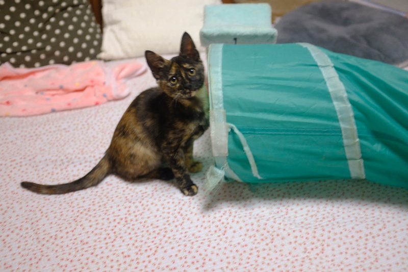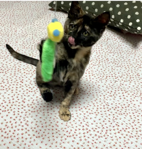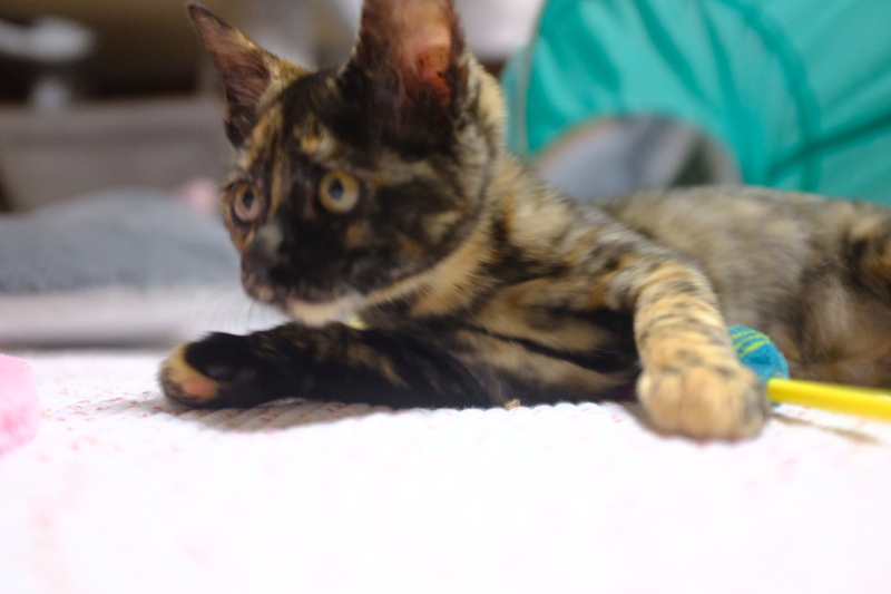 | 特徴(性格など) | お茶目な性格のお姫様です。 チャームポイントはなんといってもこのお顔♡ くりっとしたおめめとちょっと困ったような眉毛(?)がなんともいえず愛らしく、この顔で見つめられると思わず、なんでも「いいよ」と言ってしまいそうです...笑 お兄ちゃんのはっちに比べて小柄ですが、ジャンプが得意なおてんば娘です。 遊ぶのが大好きで、夢中になっておもちゃを追いかけます。 慎重でちょっとびびりなところもありつつ、好奇心旺盛で物覚えもよいので、なんでもお兄ちゃんより先にできるようになった賢い子です。 女の子らしいしぐさも愛らしく、小さなおててで優しくちょいっと触ってきたり、膝に乗るときにもポワッと柔らかい動作だったり、女の子らしいなぁと思う場面が多々あり、とってもかわいいです。 一緒に保護された黒猫のお兄ちゃんがいて、魅力いっぱいの「さび猫&黒猫」のゴールデンコンビです♡ おおらかで物おじしないお兄ちゃんのハッチと対照的な性格で、お互いに補い合える存在です。 最初はすこーし人見知りするかもしれませんが、人が好きな甘えん坊さんですので、すぐに慣れると思います。なでなでしてあげるとゴロゴロ言って喜びますので、いっぱい遊んで、いっぱいスキンシップをとってあげてください(^-^)♡ ●月齢:推定2.5~3か月くらい ●女の子 ●健康状態:良好。とっても元気です。(野良出身としては珍しく風邪も目ヤニもありません、毛もふわふわで滑らか!) ●トイレ指定の場所でちゃんとできます。 ●ミルクから育てましたので人慣ればっちりです。人に対する基本的な信頼感がありますので、新しい家庭にすぐに順応すると思います。 ●お兄ちゃんの黒猫のハッチくんと一緒に保護されました。一緒に遊んだりお留守番したりもできるので2匹一緒のお迎えはおススメですし、子猫たちも寂しくないので大歓迎ですが、1匹でのご応募も可能です。 サビ猫は個性的で、マーブル模様のように美しい毛柄に加え、賢くて愛情豊かなので、一度知ると大好きになる種類の猫だと思います。さび猫の良さをご存知の方、唯一無二のこのかわいいお顔を愛おしいと思ってくださる方にかわいがってもらえたら嬉しいです。 ご縁を感じる方、この子を家族として迎えて大事に育ててくださる方、ぜひご連絡ください! === 黒猫のお兄ちゃんのハッチの紹介ページもありますのでぜひご覧ください? |