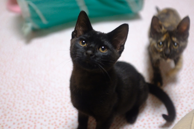 | 特徴(性格など) | ビロードのような黒くてふわつやの毛がとっても素敵です。 そして、くりくりのおめめとまあるいおなかが可愛らしく、人懐こくて愛嬌たっぷり。みんなに愛される癒し系です。 性格はおおらかで、細かいことはあまり気にしません笑 おっとりしたところがあって、快活でおてんばな妹を横目にのんびりしていることも、妹におもちゃを取られても怒らず不思議そうに見ていたりも笑。 人見知りはなく、初めての人に会っても物おじせずに走り寄り、すぐに甘えて「遊んで~」とアピールできるかわいこちゃんです。思わず抱き上げてしまう人多数。 人と触れ合うことも、遊ぶことも大好きなので、いっぱい遊んでたくさんスキンシップをとってあげてください(^-^)♡ 一緒に保護されたサビ猫の妹がいて、魅力いっぱいの「さび猫&黒猫」のゴールデンコンビです♡ 活発だけど慎重派の妹のナナちゃんと対照的な性格なので、お互いに補い合える存在です。 ●月齢:推定2.5~3か月くらい ●男の子 ●健康状態:良好。とっても元気です。(野良出身としては珍しく風邪も目ヤニもありません、毛もつやつや、ふわふわで滑らか!) ●トイレ指定の場所でちゃんとできます。 ●ミルクから育てましたので人慣ればっちりです。人に対する基本的な信頼感があります。 ●妹のさび猫のナナちゃんと一緒に保護されました。一緒に遊んだりお留守番したりもできるので2匹一緒のお迎えはおススメですし、子猫たちも寂しくないので大歓迎ですが、1匹でのご応募も可能です。 === 妹のナナちゃんの紹介ページもありますのでぜひご覧ください?♡ |
