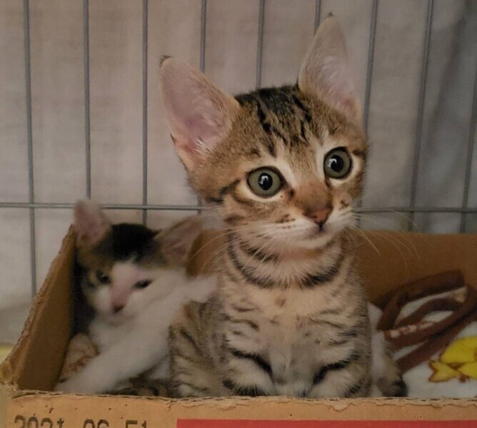 | 特徴(性格など) | 小さくてただただかわいいキジの女の子です。姉妹で保護しました。 エイズ・白血病陰性 避妊手術に関してはまだ月齢が若いこと、保護時の体重が軽く体調も万全とはいかず保護となったため未手術になります。里親さまのもとで手術を受けて頂くことになります。(術後の報告、書類の写真を送っていただくこと、ワクチン接種証明の写真を送っていただくことに同意いただきます) |