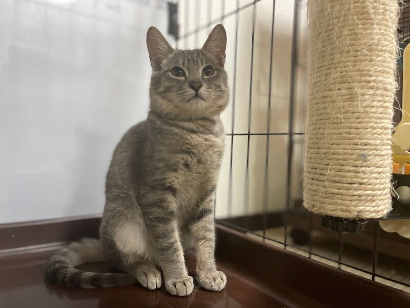 | 特徴(性格など) | 仮名:メロ、生後5ヶ月くらいの男の子です。(推定8月中旬生まれ) こちらの子猫に興味を持ち、他の写真も見たい方は遠慮なく連絡ください! 凛とした見た目でとても綺麗な子です。サバトラというよりはグレイがメインの毛色をしています。 わりと穏やかな性格で、じゃれ合ったり遊んだりもしますがそんなに激しくはありません。 ご飯もよく食べ、ちゅ〜るが好きで可愛らしい声で欲しがったりもします。 |