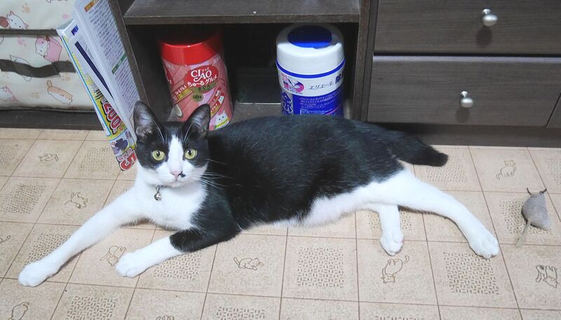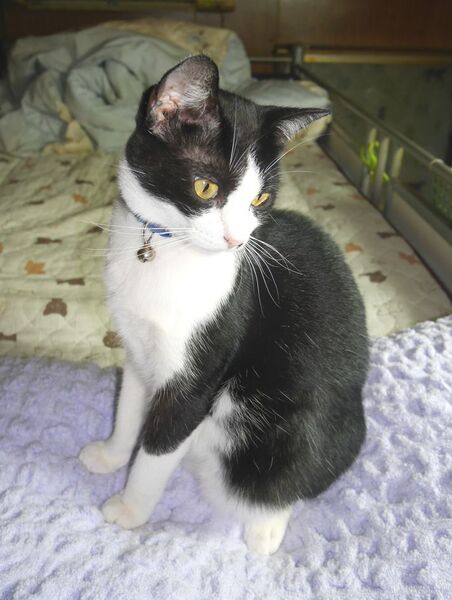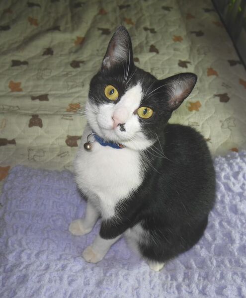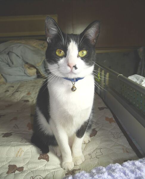 | 特徴(性格など) | 白黒鉢割れで、鼻の横の鼻くそ模様がチャームポイントです。 ベタベタの甘えん坊ですが、知らない人には最初は人見知りするかもしれません。 |