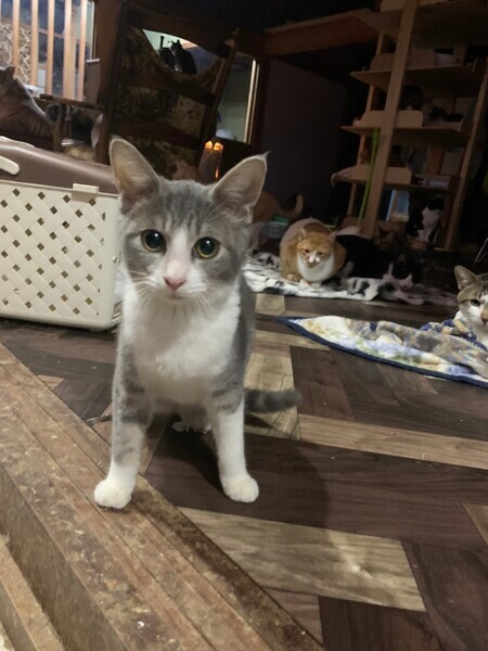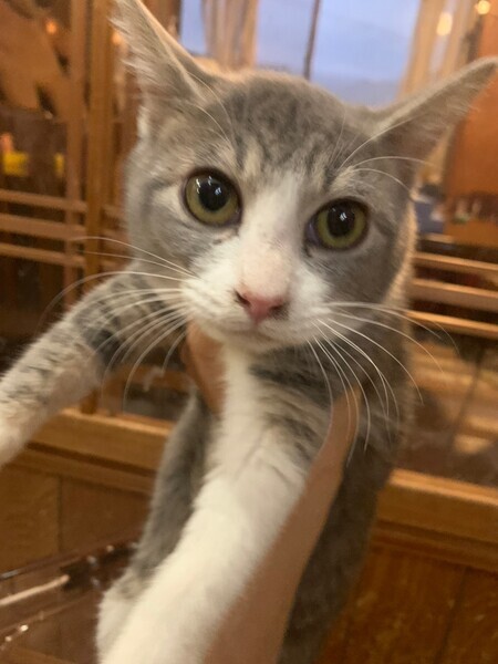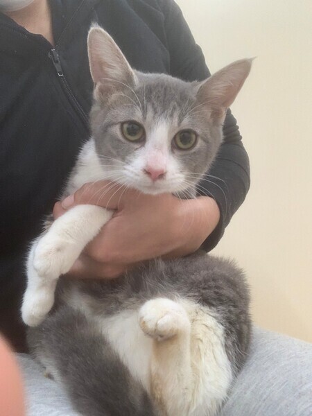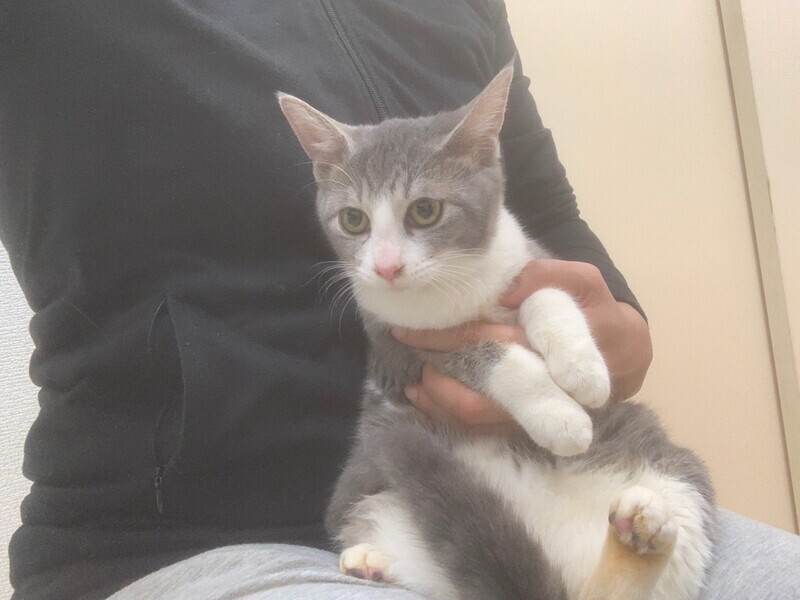 | 特徴(性格など) | 少し警戒心強いですが、徐々に心を開いて行っています。根っからの人間嫌いではないので膝の上に乗せれば病院でもチーンとしています(^^) 人気柄の白グレーでしかも珍しい女の子ですよー! ・健康状態 特に異常なし。 エイズ・白血病陰性 5種ワクチン済み 体内外害虫駆除済み |