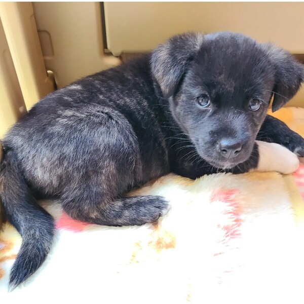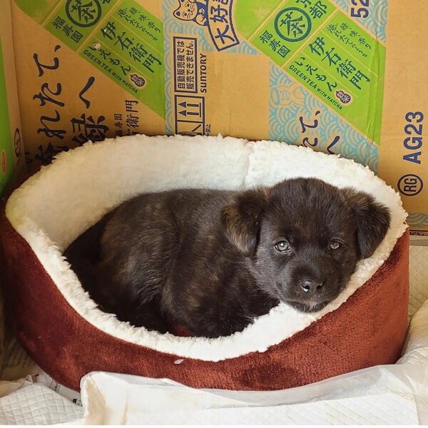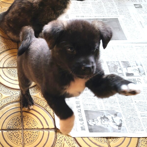 | 特徴(性格など) | 黒白(足先、胸、しっぽの先が白い) 人が大好きで、誰にでも甘えます。とても活発です。不安になると鳴いたり、夜鳴きすることがあります。 保護した時は、兄妹の中で一番小さく心配でしたが、毎日たくさん食べて活発に走り回る元気な子です。 母犬(野良犬)は、体重13kg前後の中型犬です。ききちゃんも同じくらいの大きさになると思います。 ※ききちゃんは、くうちゃん(トライアル決定)、ケルナちゃん、コモちゃんと兄妹です。 |
