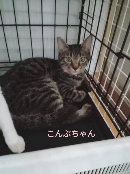 | 特徴(性格など) | 仮名「こんぶちゃん」ワクチン済み、駆虫済み、ウイルス検査白血病、エイズ共に陰性 キジの女の子 のんびりとした優しい性格です。 人と遊ぶのも好きですし抱っこも撫でられるのも好きな甘えん坊さんです。 猫初心者の方、先住がいるご家庭、お子さんがいるご家庭でも大丈夫です。 |