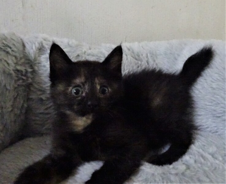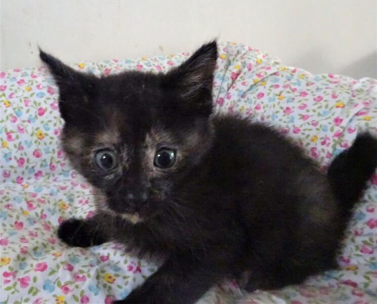 | 特徴(性格など) | 仮名: 揚羽ちゃん(メス) 毛色: 黒っぽいさび猫 性格: 小さいので、まだ個性ははっきりとしていませんが、多分、姉妹の長女で体も一番大きく、好奇心旺盛で、じゃらしにも反応します。ミルクで育っているので人馴れしており、抱っこすると喉をゴロゴロならして甘えてくれます。 姉妹は仲良しなので、音羽ちゃん、黒羽ちゃんのうちのどちらかと一緒のお家に行けると嬉しいです。 まだ小さくて、暫くは見守りが必要ですから留守番時間の短いお家でお願いします。 子猫なのでお届けは車で1時間以内圏内でお願いします。 |