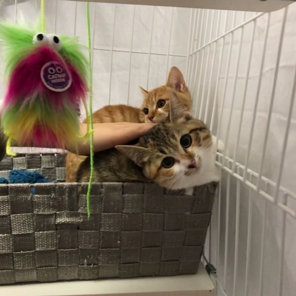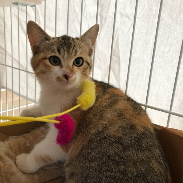 | 特徴(性格など) | 仮名:マロン 生まれた日:未定 三毛猫 約5ヵ月 女の子 約2kg しっぽ長い 兄のプリンより小さめ妹 カリカリとパウチをよく食べておトイレも出来ています ちゅ〜るが大好きです^ ^ |