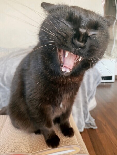 | 特徴(性格など) | 来た時からとっても人懐っこい女の子♪いつも1番にお出迎えしてくれて、寝るときも一緒です♡ 体のサイズが大きめな子なので寝心地も最高ですw 他の猫ちゃんやワンコともすぐ仲良しです!また、真っ黒な毛は触ってびっくり、サラサラのふわふわ。甘えたでかわいく癒されると思います!目と目の間は怪我をしていたのですが、今は治って産毛が生えてきています。ご安心ください。 ・避妊手術済み ・ノミダニ便虫駆除済 ・エイズ(−)白血病(−) ・3種混合ワクチン接種済 |
