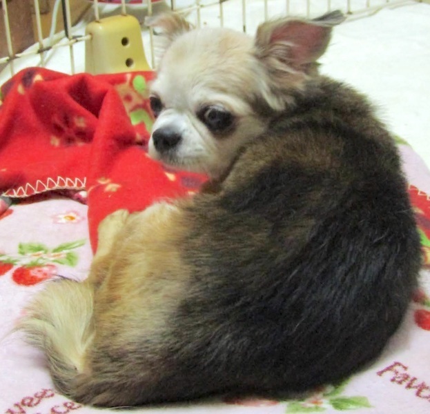 | 特徴(性格など) | チワワの『祐(たす)』です。 (ちばわんHP掲載番号No.4329)←申込時は犬の名前とこの番号を記載し、下記内容をよくお読みの上、必ずちばわんHPからお願いします。 ※「生まれた月日」は推定です。生育環境によって誤差が生じることがあります。 【毛色】こげ茶・クリーム 【体重】2.2kg 【状態】フィラリア(ー)、ワクチン接種済、マイクロチップ装着済、検便(-)ノミ・ダニ駆除済、心臓薬投与中、悪性腫瘍摘出済、両後脚問題有、尿漏有、狂犬病予防接種予定 【人馴】問題なし 【性格・その他】 抱っこが大好きなおっとりした男の子です。 引き取り当初はいつもぼんやりしていましたが、段々と目が合うようになり、今ではしっかり意思表示したり甘えたりと少しずつ感情を出すようになりました。 痛みはないようですが、両後ろ足の腱が伸びているためか膝を伸ばしたまま歩きます。よろけることも多くよく転びます。座る時も後ろ足が伸びた状態になってしまい、伸びきった足を自分でずらすことができず横になれなかったり立ち上がりにくかったりすることも多いです。 また、原因はわかりませんが滴々と尿漏れすることと室内トイレの認識がないため、日常的にオムツやマナーパットをつけて過ごしています。睾丸に悪性腫瘍がありましたが転移も見られず無事摘出することができました。 痩せ気味ですし、風邪を引いたり下痢をしたりと体調を崩すことも多いですが、保護された時の状態がかなり悪かったこともあり、今後十分な栄養補給と健康管理をしていくことでもう少し改善していくと思います。 心臓のお薬はこれからも飲み続けることになると思いますし色々と手助けが必要な祐ですが、うまく歩けない後ろ足を使ってトコトコと一生懸命歩く姿や抱っこして欲しいと真っすぐ見つめてくる眼差しはとても可愛く、甘えん坊好きでお世話好きの方にはたまらない魅力のある子です。 一緒にいられる時間はあまり長くはないかもしれませんが、今まで苦労してきた祐にたくさんの愛情を注いでくださる方とのご縁を探しています。 引き続きの室内飼育で、フィラリア予防や定期的なワクチン接種などの健康管理、脱走・逸走への細心の注意、住居等の脱走防止対策を必ずお約束してくださる関東圏内のお留守番の少ないご家庭で、終生家族の一員として祐を大切にしていただける方からのお問い合わせを心からお待ちしております。 【預かり場所】神奈川県三浦郡 【日記】「チビスケんち」(インスタグラム) https://www.instagram.com/chibisukehaha/ 【申込み】 ちばわんの保護犬『祐(たす)』への申し込みはhttp://www.chibawan.net/contactform_dogからお願いします。 |