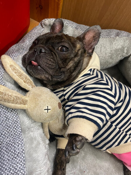 | 特徴(性格など) | ■特徴(仮の名前:うに) フレンチブルドッグ♀ 推定6歳 体重5.8キロ ■性格・暮らし ・人が大好きで甘えん坊ですが、フレブルらしく興奮しやすい面もあります。 ・トイレシートの認識はありますが、失敗もあります。 ・お散歩は好きです。 ・ケージでお留守番ができます。 ・肝臓の数値(ALT)が高いので、フードで様子を見ています。 ■今までに行った医療行為 ・避妊手術 ・混合ワクチン接種 ・フィラリア抗原検査(ー) ・検便 ・歯石除去および抜歯 ・血液検査 ・マイクロチップ装着 ・両後脚の皮内腫瘤切除 ■今後行う予定の医療行為 ・3ヶ月後の血液検査(ALT) |