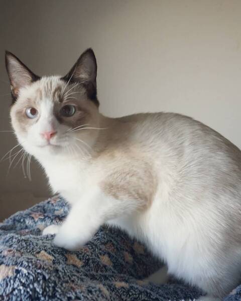 | 特徴(性格など) | 2021年7月下旬生まれ(推定) 毛色:シールポイントバイカラー しっぽ:幸運を引っ掛ける鍵しっぽ 所謂シャム猫のような毛色ですが、丸顔にむっちりボディ、タヌキのようなフォルムで、シャム猫のようなしなやかさはありません。笑 ただ、このちょっとコミカルな顔が可愛い! ずんぐりむっくりボディも可愛い!! 保護当初は率先して威嚇するか逃走するかでほぼ触れませんでしたが、今ではケージ越しでもアピールするほどに。 柔らかいコートは抱き心地&撫で心地抜群です。 食欲旺盛、猫じゃらし大好きでよく遊びます♪ 人馴れはしていますが、根本的にビビリで気の小さい子。 スロースタートになるとは思いますが、人も猫も好きな子です。 ピレウスのペースで見守っていただけるおうち希望です! ☆不妊去勢手術済 ☆三種混合ワクチン2回済 ☆ノミダニ取り済 ☆駆虫済 ☆マイクロチップ挿入済 ☆トイレしつけ済 ☆ウイルス検査 エイズ 陰性、白血病 陰性 |