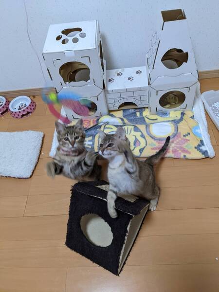 | 特徴(性格など) | 怖がりさんだけどマイペースな女のコです。 必ずみんなでくっついてるというよりは、好きな場所で好きに寛ぐ、マイペースおっとりさんてす。 最初は怖がりますが、ナデナデは好きなようで気持ちよさそうな顔をされるともぉたまらん♡です! 夜の運動会は子猫の元気な証拠。 毎日のようにみんなで走り回っています! 4匹兄弟の中でも1番おだやかで控えめな性格で先住猫さんのおられるおうちでも大丈夫だと思います。 一人っ子でも大丈夫ですが、できれば仲良し兄弟ジジくんと同じおうちにいけたら安心かなと思います。 日々の様子をインスタにあげています。 ぜひご覧ください! https://www.instagram.com/komari7192/?hl=ja |