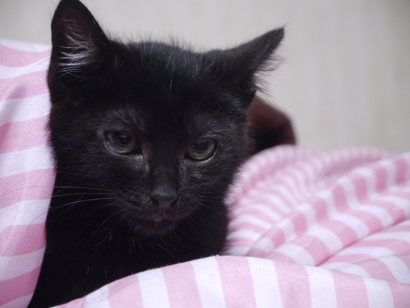 | 特徴(性格など) | 丸々お顔の元気な黒子猫 しっぽがくねくねとしているのでしっぽちゃんです 姉妹3匹でいつも遊んでいます ドライフードを中心にウェットフードを添えています おなかの調子は良好 |