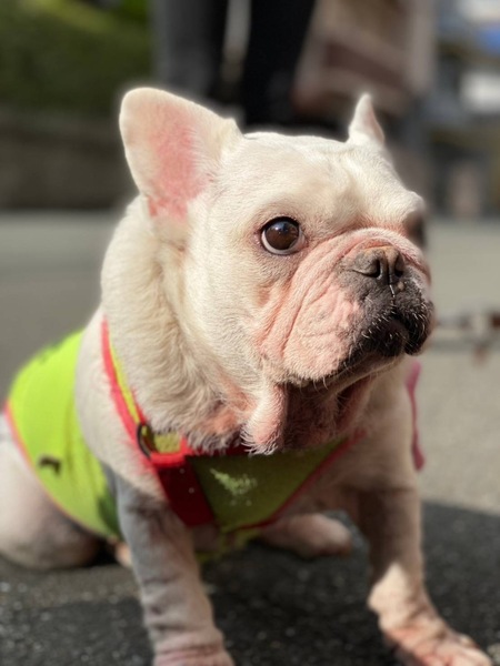 | 特徴(性格など) | 名前:ほわん 犬種:フレンチブルドッグ 性別:メス♀ 毛色:クリーム 年齢:3歳ぐらい 体重:7.4kgくらい 性格:元気で人懐っこい子です。 撫でてもらうのが大好きで、日頃からじーっとこちらを見つめて撫でてもらうのを待っています。 初対面の人でも、膝のうえに乗るとおっとりして、そのまま寝てしまうこともあります。 トイレは外、室内で可能です。 トイレシーツの認識がありますが、たまにお布団や座布団でトイレしてしまいます。 1部屋に1つトイレシートがある方がいいと思います。 留守番は大人しくできます。 散歩は、公園や芝生が好きで、自分の気になる方へ行きます。 皮膚が悪く、よく痒がっています。アレルギー対応のドッグフードを与えたり、化粧水で保湿、皮膚を傷つけないように服や靴下を履かせたりしています。 悪かったお耳は、全耳道除去手術を実施し、現在痒がることもなく落ち着いています。しかし、手術の影響で、左側に顔面麻痺が生じました。 4時間に1回、人工涙液を点眼する必要があります。 また、お耳がほぼ聞こえなくなったので、車や自転車に気をつけて散歩してもらうことが必要です。 甘えた元気いっぱいほわんを可愛がってくださる方をお待ちしております。 |