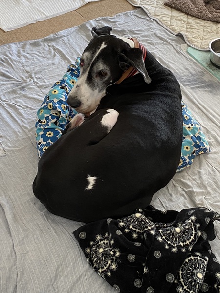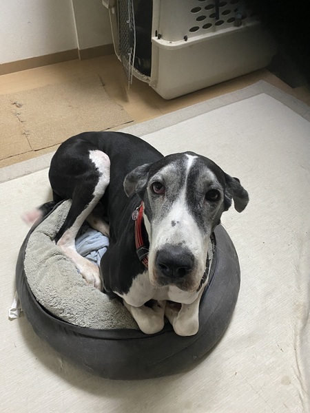 | 特徴(性格など) | 名前:ティラミス 犬種:グレートデン 性別:メス♀ 毛色:マントルカラー 年齢:6歳ぐらい 体重:55kgくらい 性格:とても大きいのに、大きさをわかってないのか、全身を使って甘えにきます。 ぶつかってくるので体感がしっかりしてないと危ないです笑 トイレは基本的には、外でやりたいようです。 散歩の歩いている時にはしないですが、ドッグランや公園でしっかり時間をとってあげる時によくします。 チャイムや知らない人の来客で吠えることがあります。 撫でてもらったり、匂わせてもらったりすると納得して大人しくなります。 留守番もなる時にもハウスの中でおとなしくできます。 ハウスに入る時にも「ハウスー」と言うと、すぐに入ります。 散歩は、好きですが、引っ張ったりせず、ゆるゆるーとついてきてくれます。 興奮することもなく穏やかに歩けます。 レスキューしたばかりの頃は、体力もなかったのですが、今は段々と筋力もついてきて、歩ける距離は伸びてきました。 ただ、暑さもありますし、そんなに無理させることなく、時間も距離も控えめに散歩してます。 家の中では、よく寝ています。 稀に家の中で、テンション高く走り回ることもあります。 マットなどをブンブン振り回して楽しそうにしています。 デンで6歳なので、ケアもいろいろ必要とは思いますが、 大きな体も愛も受け入れてくださるご家族様からのお問い合わせをお待ちしております。 |