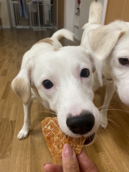 | 特徴(性格など) | 名前:ルルロロ 犬種:Mix 性別:メス♀ 毛色:白薄茶 年齢:11ヶ月ぐらい 体重:8.7kgくらい 性格:ビビりさんですが、若いので人馴れや環境に慣れてくるのは早いです。 他の犬は好きで、先住と遊んだりしてます。 チャイムや来客に吠えたりする事はないのですが、 他の犬たちが散歩に連れて行かれて、自分1人残された時には寂しくて吠える事があります。 他の犬たちと一緒にお留守番の時には吠えたりしないです。 ビビりからの失禁脱糞をする事があります。そして、ルルロロはちょっと怖い事があるとパニックで口が出たりします。 最初の病院に行く時にも口が出ました。 捕獲の際にも現地の方が噛まれてしまいました。 今の預かりさんの元で、徐々に慣らして行くと口が出る事も無くなったのですが、新しい環境や新しいご家族様には、また一からかもしれません。 トイレは基本的には外でしたがります。 |