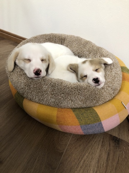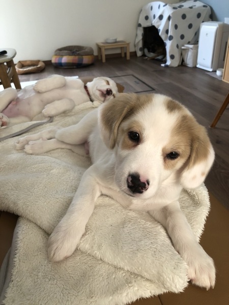 | 特徴(性格など) | 名前:ベイクド 犬種:Mix 性別:オス♂ 毛色:白、キナリ 年齢:3ヶ月 体重:4.1キロくらい(ぐんぐん成長中) 性格:日中はフリーで、一緒に預かっているスフレ・先住犬と過ごしています。遊んだり寝たりと伸び伸びしています。 夜間は別部屋だと夜鳴きが見られましたが、人と同室にして、そばで寝る事で落ち着きました。 トイレ・シートの認識あり。 日中・夜間共にトイレスペースで排泄し、ほぼ失敗しません。 小は回数かなり多い。大は見つけ次第片付けないと、踏んでしまったり、遊びに夢中でぐちゃぐちゃにすることもあります。 食事・1日3回。ふやかしたフード。食欲旺盛。お腹良好。 留守番・留守番自体がほぼ無いが、あるときは2匹一緒にゲージインで長くて5時間くらい。ゲージに入れると2匹で騒いでます。 散歩は抱っこで近所をまわっています。 |