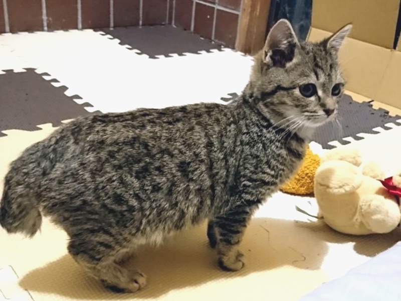 | 特徴(性格など) | ★性格その他:好奇心旺盛な性格です。物怖じせずに探検し、人懐こく鳴いて甘えます。ちょっぴり足が短めで、マンチカン風な可愛い女の子です。 ★子猫のため、出来れば兄妹(ハチ♀)一緒か先住猫ちゃんのいるお家を希望しています。 |