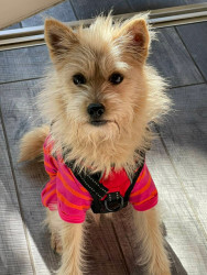 | 特徴(性格など) | ■特徴 (仮名:デイジー) テリアミックス♀ 推定2歳 体重4.5キロ ■性格・暮らし ・少し怖がりですが、人なつこく、寂しがり屋です。 ・運動能力に優れており軽々と椅子等に飛び乗ります。 ・お散歩は上手ですが、怖いものもたくさんあります。 ビックリすると飛び跳ねて逃げようとすることがあります。 ・トイレはシートで出来ます。 ・どこを触っても大丈夫です。 ・サークルでのお留守番・就寝は出来ます。 出かける時や長時間のお留守番では吠える事もあります。 ・他犬はそつなくやれますが、苦手な犬もいます。 ■今までに行った医療行為 ・混合ワクチン(11/29) ・マイクロチップ装着(11/29) ・検便(-)(12/1) ・避妊手術(12/9) ■今後、行う予定の医療行為 ・狂犬病予防ワクチン |
