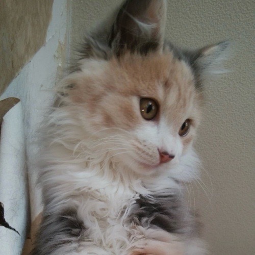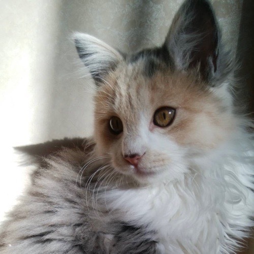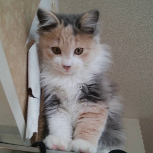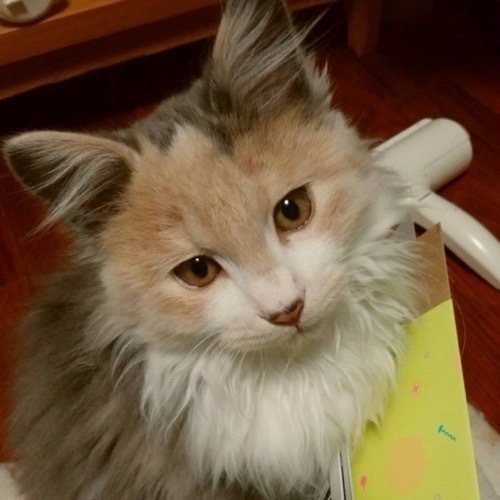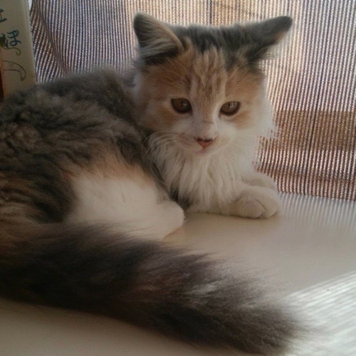 | 特徴(性格など) | 見た目はかなりゴージャスな長毛の三毛猫さんですが、中身は割とわんぱく(笑)毎日カーテンに戦いを挑んだり、大人猫の尻尾で遊んだりと子猫らしさ全開です。 大人猫にも人間にも甘えん坊さんです。 保護してからも割と短期間で人間との生活にも馴れました。 保護時にピロリ菌がいましたが、投薬治療で除去済み、今は食欲旺盛で、元気一杯です。 子猫は誤飲も心配ですので、お部屋をしっかり片づけていただけて、脱走対策・健康管理を徹底して下さる里親様とご縁がつながると嬉しいです |
