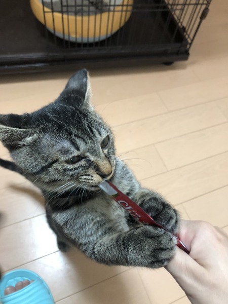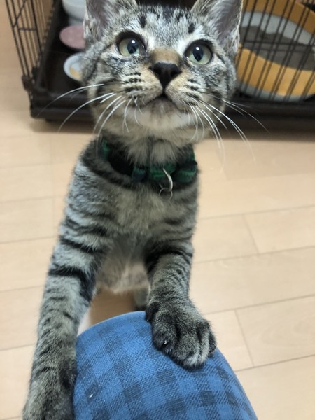 | 特徴(性格など) | 2021.9.9生まれ(推定) 毛色:キジトラ ちょっと黒色がかったキジトラの男の子。 しっぽはまっすぐ長いしっぽです! ご飯もしっかりモリモリと食べ、自分のを食べ終わっていないのに 他の子のご飯も気になっちゃう食いしん坊さん。 おしゃべりが得意で、走りながら喋っていることも笑 遊びで好きなのは丸いボール。 とにかく丸い物を見ると独り占めせずにはいられないっ! 他の猫とのニャンプロも大好き! お昼寝はちゃっかり他の猫のベッドにお邪魔して一緒におねんねしています。 |