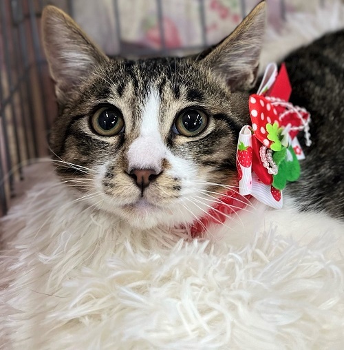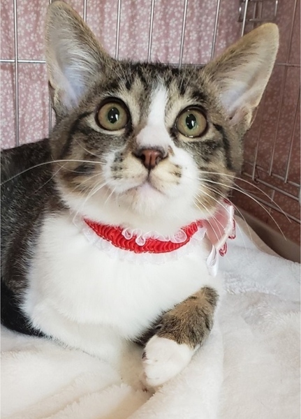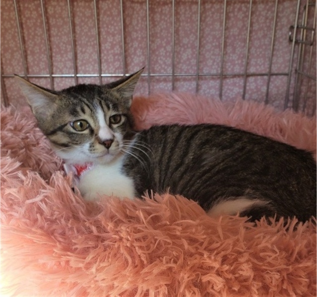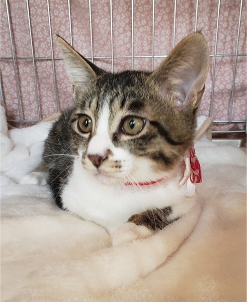 | 里親募集する理由 | 外でご飯をあげている方から、子猫が生まれてしまった、と相談があり保護しました。栄養状態が悪く、ガリガリで脱水になっていましたが、治療してすっかり元気になりました。 | ||