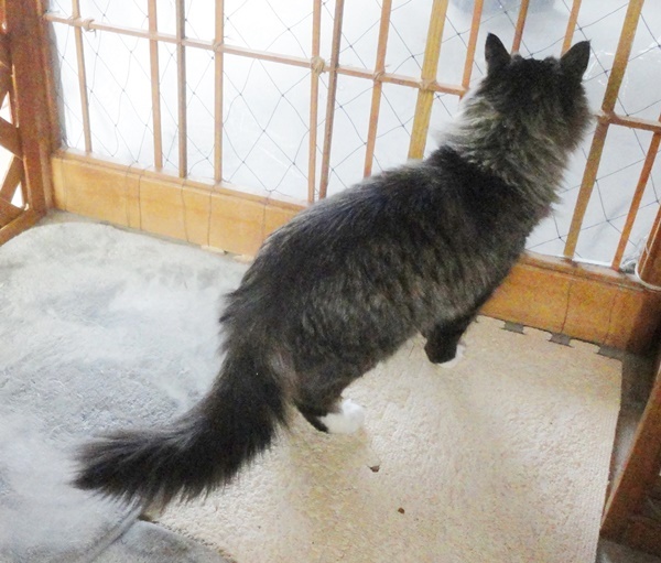 | 里親募集する理由 | 9月下旬からガレージに住み着きました。現れたときは3か月くらいの子猫でしたが、人慣れせず、つまえるまでに2か月もかかってしまったため、大きく育ってしまいました。 徐々に心を開き、触らせてくれるようになりましたので、満を持して、12/8日に捕獲いたしました。 現在は、ガレージにある猫部屋で、先輩猫3匹と暮らしています。猫社会のマナーは身につけており、先輩猫たちともうまく付き合っております。 猫部屋に入ってからは、なでることも、だっこすることも、ひざにのせることも、マッサージすることも、好きなだけさわらせてくれ、ゴロゴロと大きく喉をならし、気持ちよさそうな顔をします。 ガレージにいたころは外に出かけたり、ヒモやボトルのフタなどを見つけて、元気に遊んでおりましたので、まだ外に出かけたい様子で、閉じ込められているうえ、まだ、警戒心があるため、あまりはしゃいだりしないのですけれど、徐々に活発になってきております。 |