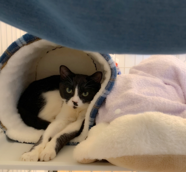 | 特徴(性格など) | 仮名:ココちゃん とっても穏やかな性格の甘えん坊さんです。 とにかく人懐っこく、ケージから出たとたん撫でて撫でて~と人にスリスリ。 小さなお子さんにも上手に甘え、とても優しく穏やかに対応してくれます。攻撃性はまったくありません。 昼はハンモックや筒形ベッドで、夜のくつろぎタイムにはソファで人にくっついて寝るのが好き。 まだ若いのでおもちゃでも元気に遊びます。 黒多めのきれいなハチワレでお鼻の黒ポチがチャームポイント。クリクリの瞳ですが目をつむるとどこに目があるかわからなくなるところもとっても可愛いココちゃんです♪ 健康状態も良好です。 食欲旺盛で排泄も問題ありません。 猫エイズ陰性、白血病陰性、避妊手術済み、ワクチン接種済み、駆虫済み、マイクロチップ装着済み。 |