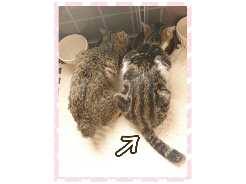 | 特徴(性格など) | ★カズ♂ ★キジトラ白 ★生後3ヶ月位 ★性格その他: 一緒に保護されたキジトラ白(ケイ♀)と兄妹です。ビビリ?と思いきや、すぐに環境にも慣れ、慣れたら動じない甘えん坊なイケメンです。とても綺麗な模様がポイントです(^-^) 子猫のため、出来れば兄妹(ケイ♀)一緒か先住猫ちゃんのいるお家を希望しています。 |