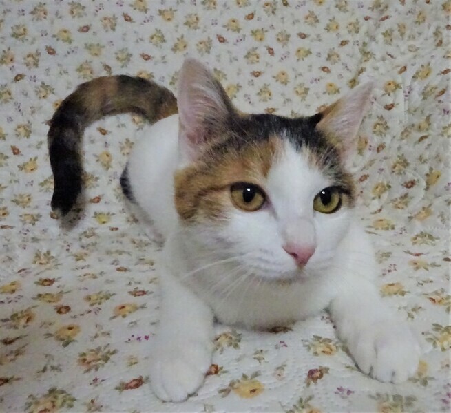 | 特徴(性格など) | 仮名: マリーちゃん(メス) 毛色: 白っぽい三毛、尻尾は縞模様で長い 性格: 人馴れはしていますので、初めてでも抱っこできます。 自分からはスリスリ甘えて、ゴロンゴロンするのが好きですが、気分が乗らない時に抱っこされるのは嫌みたいです。知らない猫がいると、威嚇してみたりするので、ビビリの面もあると思います。 ちょっと猫見知りの所があるので、他猫とすんなりと仲良くしませんが、なんとなく同じ部屋にいるのは大丈夫のようですから、優しい先住猫がいるお家でも大丈夫と思います。姉妹にアリスちゃんがいますので、一緒でも良いですが、そっくりなので、別々でかまいません。 ノミ取り済 検便済 駆虫済 3種混合ワクチン済 避妊手術済 猫エイズ・白血病ウィルス検査はともに陰性 |