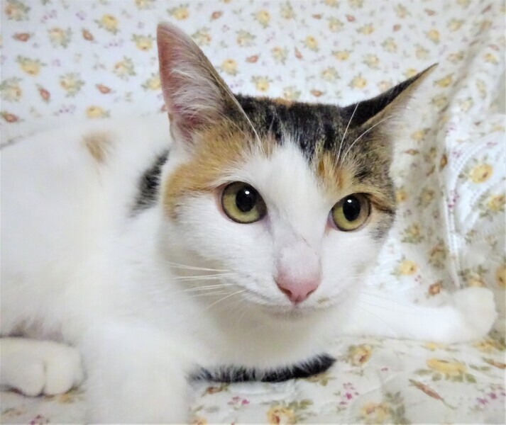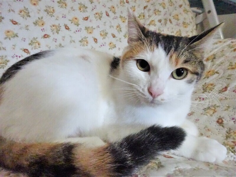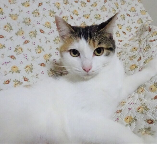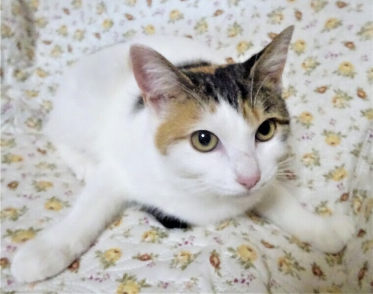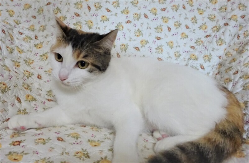 | 特徴(性格など) | 仮名: アリスちゃん(メス) 毛色: 白っぽい三毛、尻尾は長く縞模様 性格: 人馴れはしているので、初めて会って抱っこ出来ますが、どちらかと言うと引きこもり気味の大人しい子です。 知らない猫に威嚇するような事はないですが、すんなりと仲良くも出来ません。 少し時間がかかるようです。 喧嘩しないので、先住猫がいる場合はゆっくり時間をかけると大丈夫と思います。 抱っこして撫でていると気持ち良さそうにしていますが、自分からはあまりスリスリして来ません。 じゃらしでも遊びますが、他の子が激しく遊んでいると遠慮しているみたいにちょっと離れて見ていて、時々隙間から手を出して遊んでいます。 姉妹のマリーちゃんと一緒でも良いですが、そっくりで見分けが難しいので別々で構いません。 ノミ取り済 検便済 駆虫済 3種混合ワクチン済 避妊手術済 猫エイズ・白血病ウィルス検査はともに陰性 |