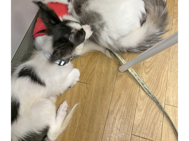 | 特徴(性格など) | ■ 基本情報 ・管理番号 【211116-45】 ・犬種・性別・名前(仮) パピヨン ♀ ルージュ ・年齢・体重 推定5ヶ月 体重 2.32kg ・特徴 ホワイト&ブラック ・性格 元気で明るくやんちゃです。 ■ 暮らしについて ・日常過ごす場所 普段は室内フリーで過ごしています。食事・就寝・見ていない時はケージに入ります。 ・食事 子犬ですので質の高いプレミアムフードを与えています。 ・トイレ 練習中です。食糞をしますので、なるべくお留守番時間が少ない方が良さそうです。 ・散歩 まだしていません。 ・お留守番 ケージやハウスで過ごさせています。ケージやサークルでのお留守番は得意ではありません。 かなり鳴きますので、しっかり時間をかけて躾をしてください。 子犬ですから悪戯などもしますので、見ている事ができないとき、ちょっと目を離すときは必ずハウスやケージに入れてください。 ・外出 練習中です。 ・お手入れ シャンプーやブラッシングは素直にさせてくれます。 ・他犬との関係 問題なく過ごせますが、空気は読めません。 子犬なので遊びにしつっこく誘ったりもします。 ・人との関係 基本的に警戒心がありますが、慣れれば明るく元気な子です。 ・お願いしたいこと 日々のブラッシングや定期的なシャンプーをお願いします。 子犬ですので、咬んだり・鳴いたりをします。気長に躾をお願いします。 すばしっこいので、必ず逃走対策をお願いします。 ■ 医療管理について(実施日) ・混合ワクチン 〇 5種(11/4) ・狂犬病予防注射 × (近日接種予定) ・フィラリア抗原検査 - ・不妊手術 〇 ・マイクロチップ 〇 ・健康チェック 〇 ・スケーリング ・便検査 ・その他の医療措置 駆虫ドロンタール(11/12) 駆虫バイコックス(11/12) フロントライン(11/12) ・必要な継続医療 特になし ・現在の一時預かり先 東京都江東区 ・預かりスタッフ カコ&あや ・預かりブログ 晴れ ときどき 仮ママ(2021/11/16~) ・https://ameblo.jp/pinky12/ 江戸っ子の仮兄妹 ・https://ameblo.jp/ayapcd/ ・引取時の様子 ・http://chibatarianna.jugem.jp/?eid=7379 |